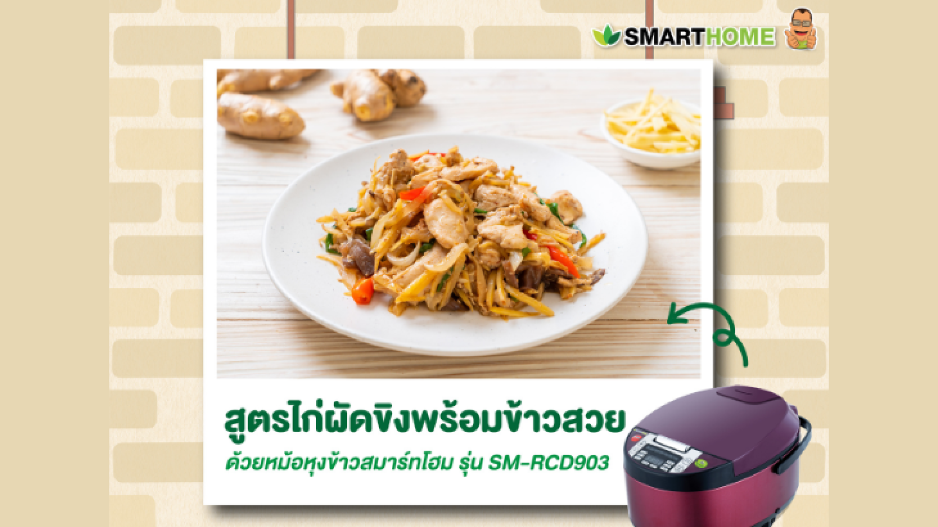 สูตรไก่ผัดขิงพร้อมข้าวสวย ด้วยหม้อหุงข้าว Smarthome รุ่น SM-RCD903