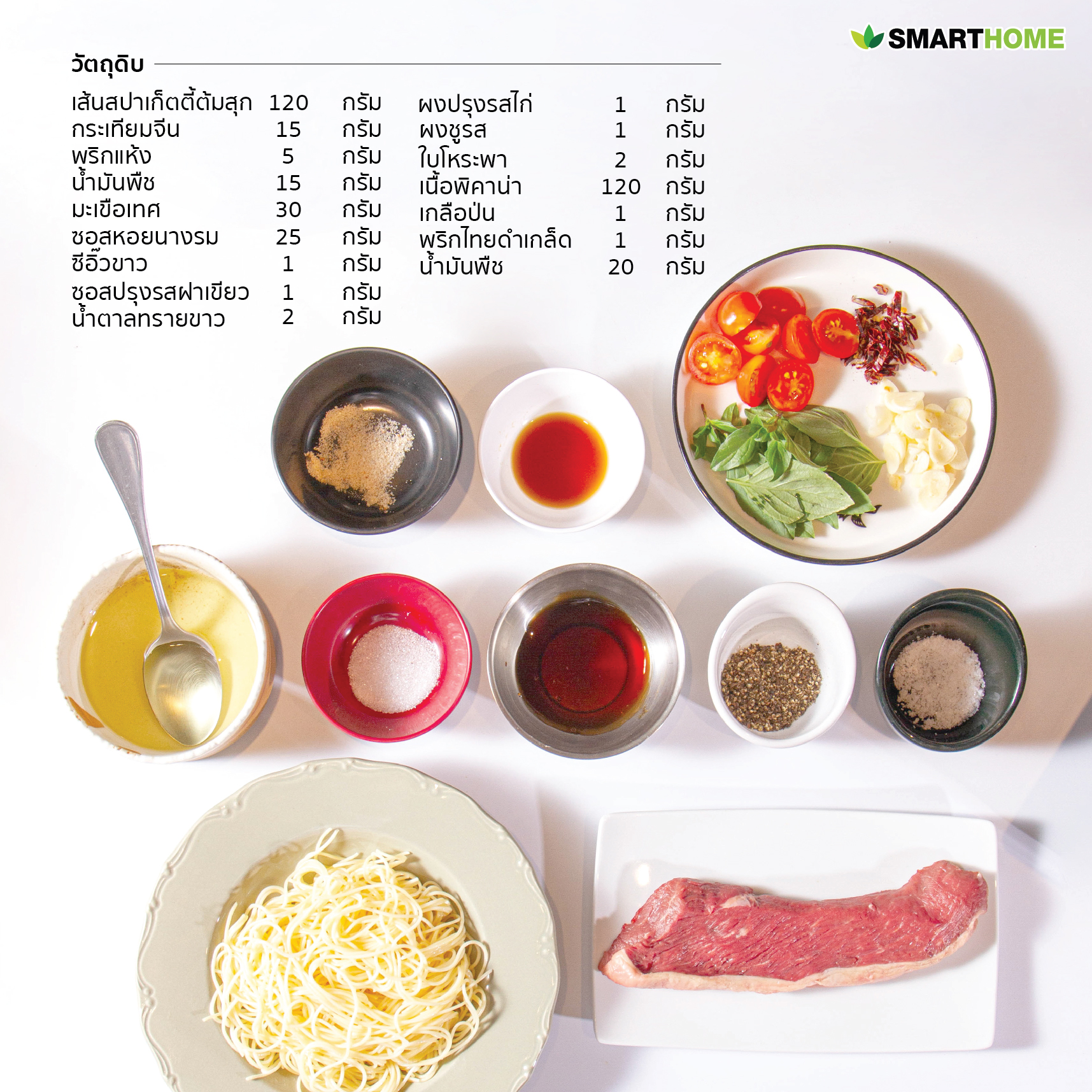 สูตรสปาเก็ตตี้เนื้อย่าง ทำง่ายด้วยเตาแม่เหล็กไฟฟ้า SMARTHOME