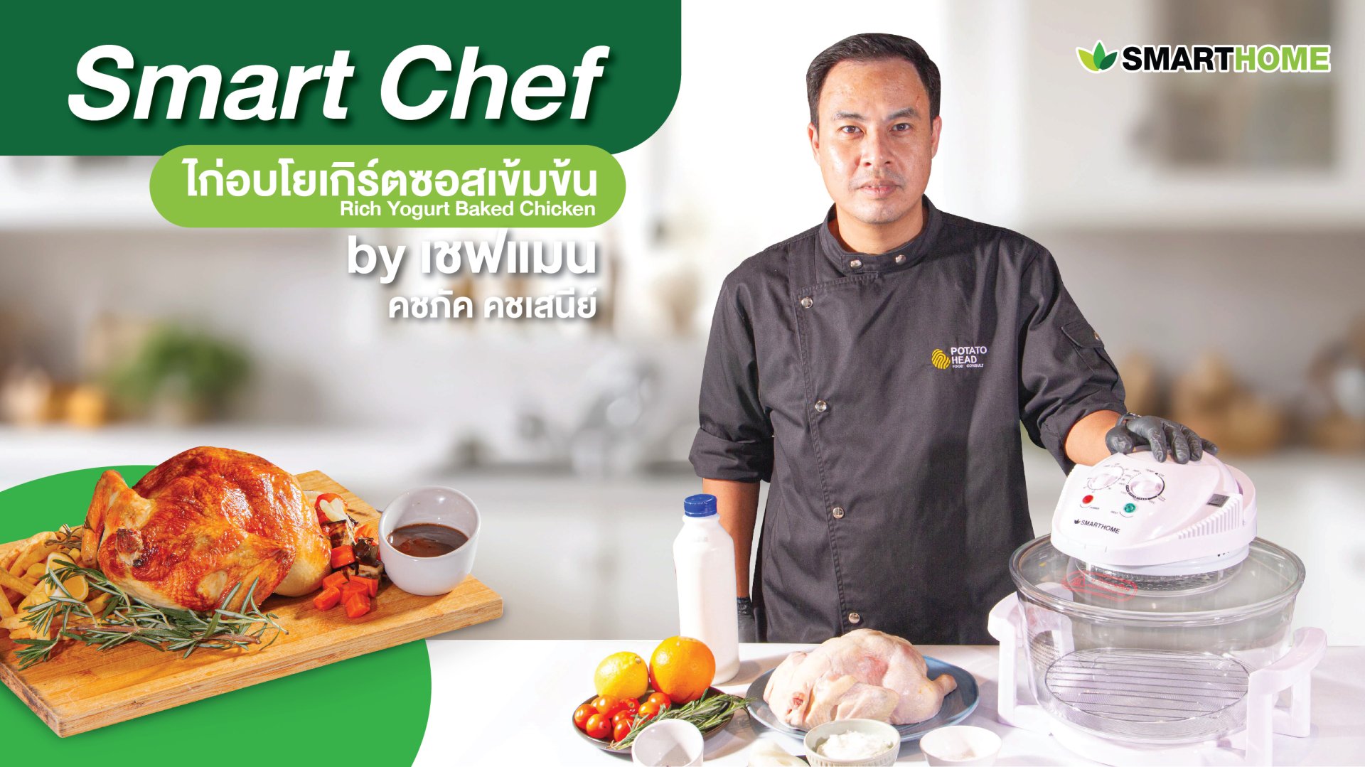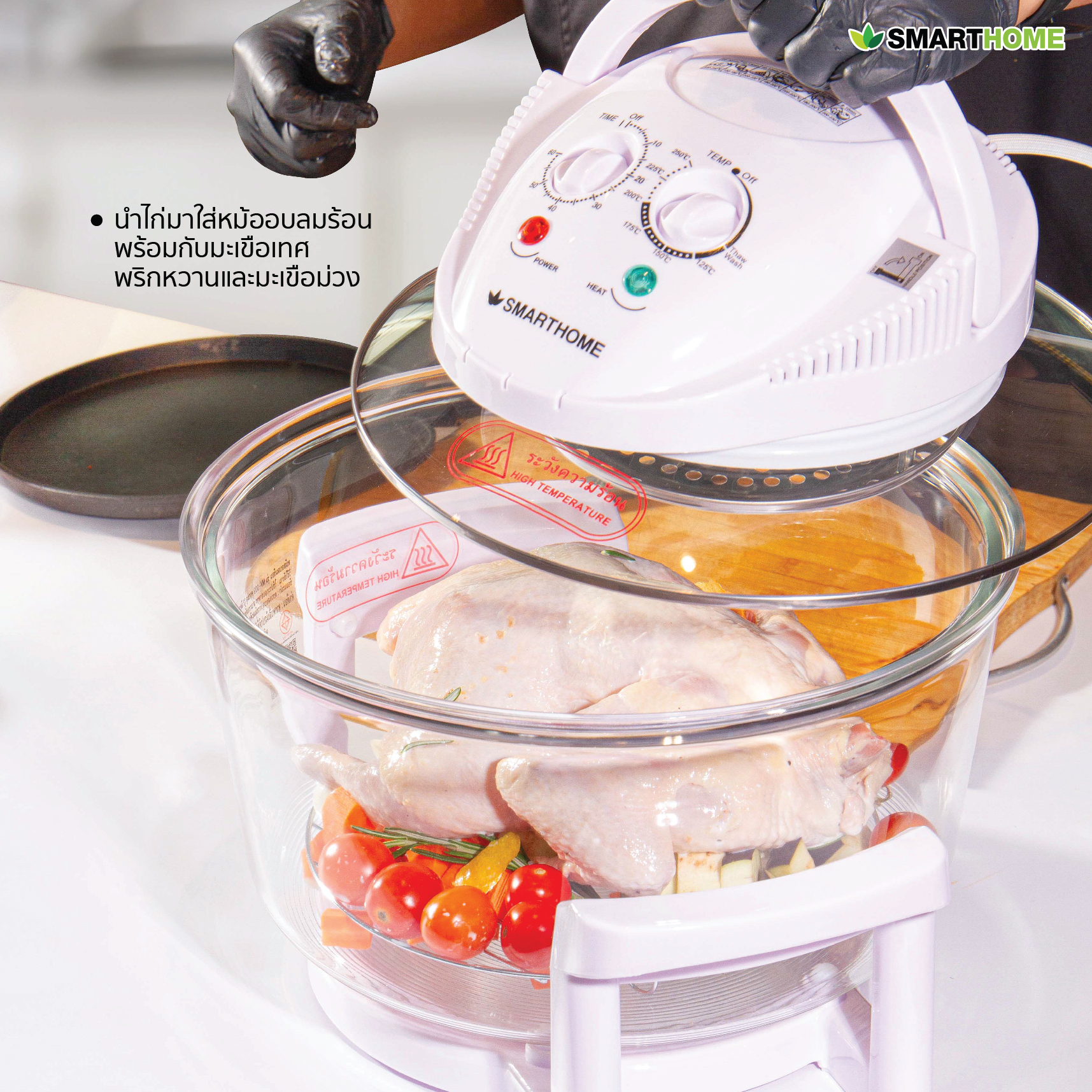 หม้ออบลมร้อน SMARTHOME จะช่วยให้ไก่สุกทั่วถึง และคงความชุ่มฉ่ำของเนื้อได้อย่างดี