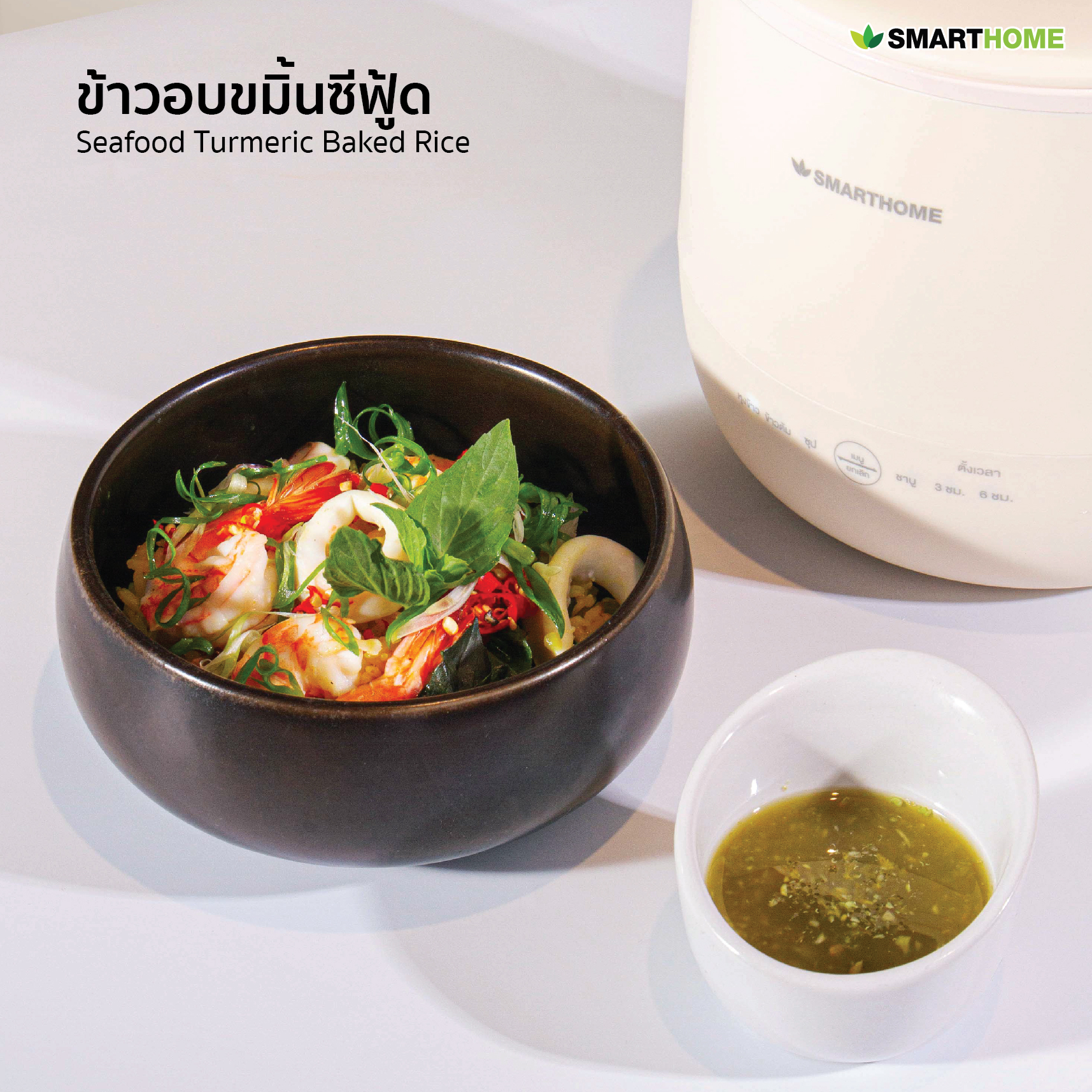และที่สำคัญ เมนูนี้สามารถทำได้ง่าย ๆ ที่บ้านด้วย หม้อหุงข้าว SMARTHOME รุ่น SM-RCD301 ที่ช่วยให้การทำอาหารสะดวก รวดเร็ว และได้ข้าวที่สุกนุ่มกำลังดี